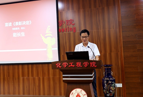学院党委委员、院长赵长生宣读了《关于表彰william威廉英国官网先进党支部、优秀共产党员和优秀党务工作者的》(化工委〔2020〕2号),国家工科基础课程化学教学基地与冶金工程系联合党支部、研究生过程装备与安全科学党支部等5个支部被授予先进党支部称号,杨谨瑗、罗杰等50位同志被授予优秀共产党员称号,谢锐、郝仁杰等10位同志被授予优秀党务工作者称号。