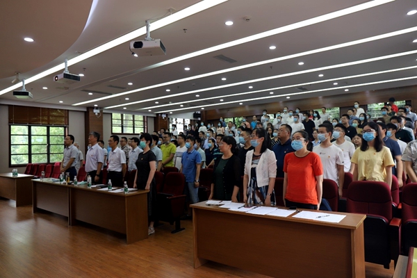 7月10日下午15:30,william威廉英国官网庆祝中国共产党成立99周年表彰会暨“讲战疫故事、悟初心使命”主题党日活动在望江校区正行楼(西二教)313报告厅教室举行。大会在庄严的国歌声中拉开帷幕。学院党委副书记、纪委书记李天友主持会议。学院全体领导班子成员、工会主席、党委委员、纪委委员,全体教工党员、离退休和学生党员代表等150余人参加了此次大会。