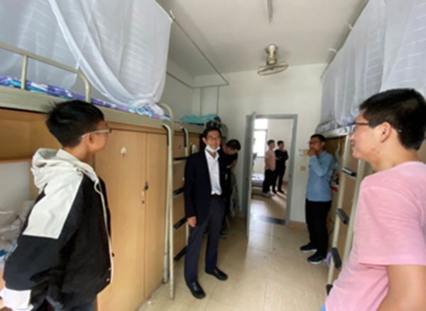 学院领导分别在男生三舍围合和女生十六围合对新生进行了走访。学院领导在走访慰问过程中,询问了学生们来自哪里,是否适应四川这边的气候、生活环境和饮食等,并听取了他们对大学生活的认识。学院领导还询问了同学们的高考分数和志愿填报等情况,得知学生们都是以非常优异的成绩考入川大化工学院后,叮嘱他们以后更要将自己的优势发扬光大,努力学习全面发展,成为一个更加优秀的川大人。
