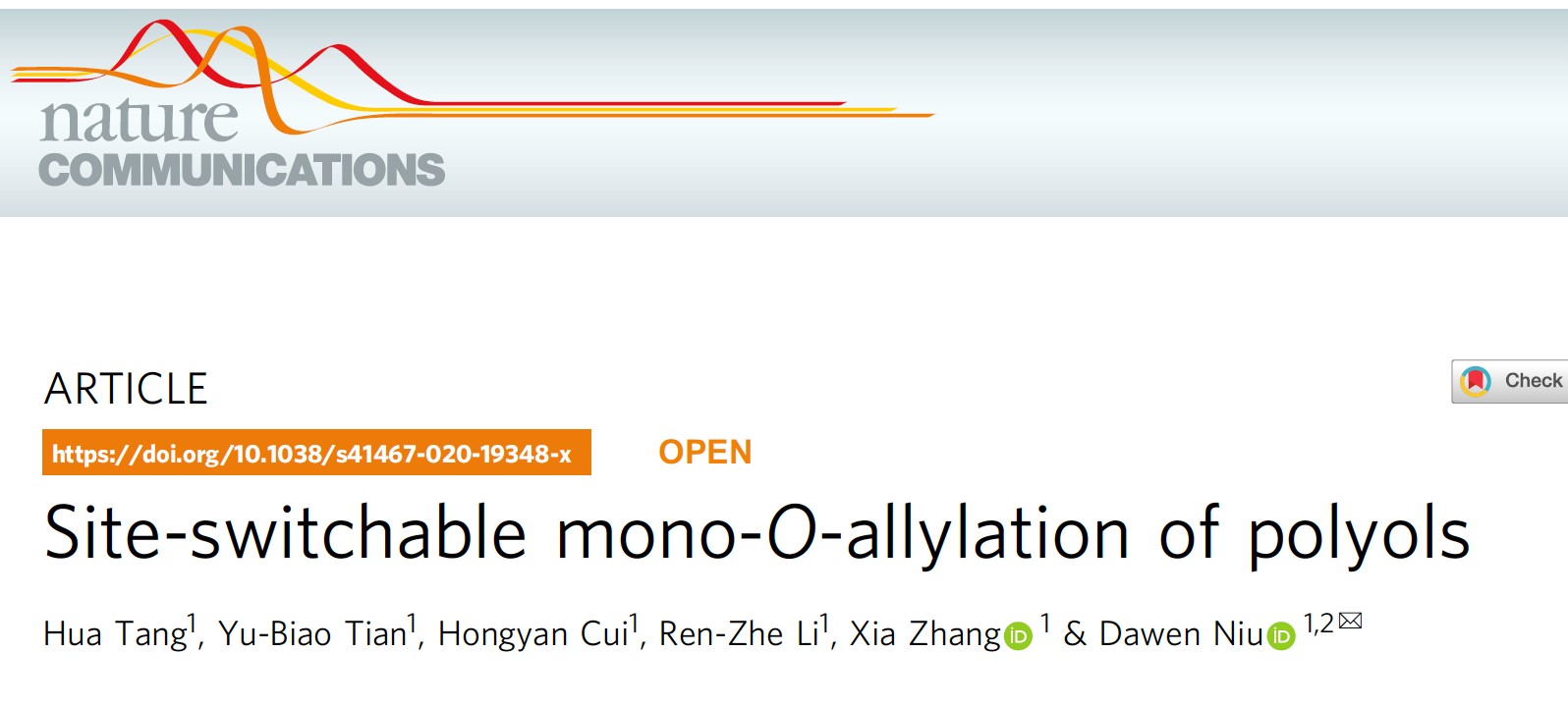 2020年11月10日,william威廉英国官网钮大文教授团队在Nature Communications上发表了题为“Site-switchable mono-O-allylation of polyols”的研究论文。该研究主要涉及糖类和多羟基化合物的选择性修饰。该文章通讯联系人是钮大文教授。