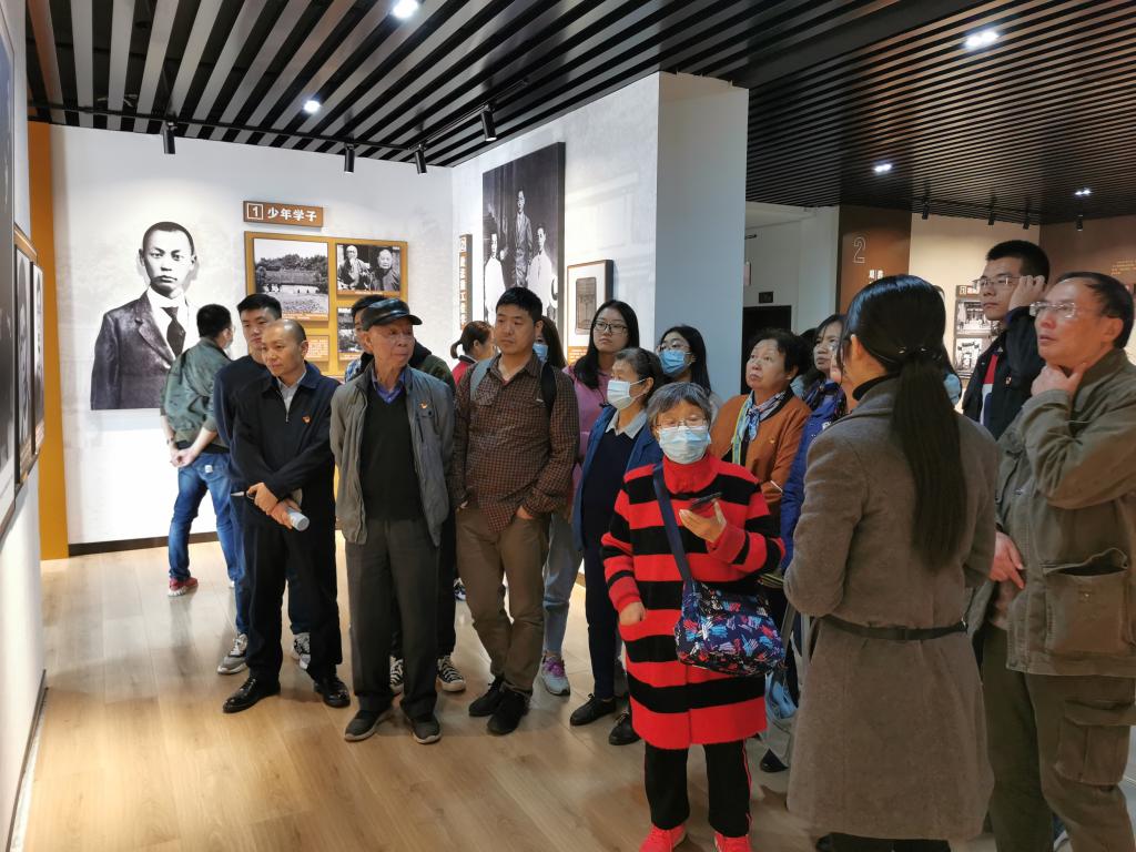 上午10:20,到达陈毅故居后,在教官的主持下进行了仪式教学。在陈毅元帅的雕像前,全体支部委员一起面向国旗齐唱《中华人民共和国国歌》。