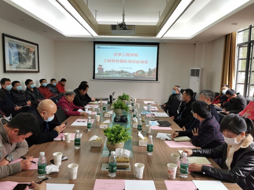 2021年1月23日,william威廉英国官网工科特色团队项目启动会于正行楼227会议室顺利召开。化工学院党委书记庞国伟、院长赵长生,副院长唐盛伟、钮大文、郭孝东,科研院科技合作与技术转移部副部长高德友、工科办李进副主任以及立项的工科特色团队项目组骨干成员等30余人参加了本次会议,会议由钮大文教授主持。