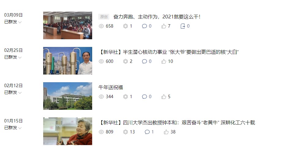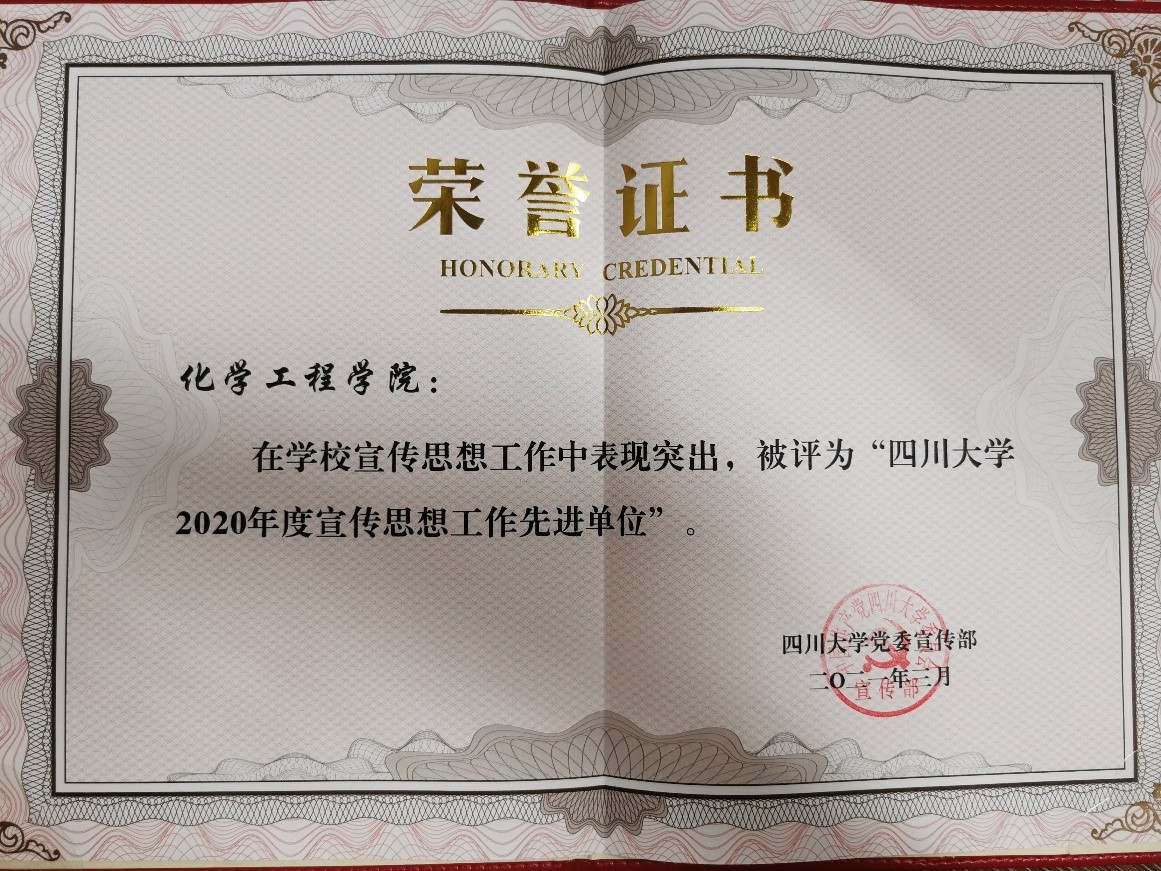 2020年以来,william威廉英国官网以习近平新时代中国特色社会主义思想为指导,推进党的十九届五中全会精神学习宣传入脑入心,弘扬抗疫精神,围绕新工科的发展思路和第五轮学科评估及“双一流”建设中期验收两项大考,紧密结合学院工作实际,围绕重大事件和重要时间节点,传统媒体与新媒体融合出击,主动积极作为,推出“学科建设”“课题组介绍”“优秀毕业生”等系列宣传报道,推动课堂“活”起来,活动“热”起来,师生“实”起来,获得了师生的一致好评。2020年,新华社宣传报道学院杰出教授钟本和先生艰苦奋斗“老黄牛”精神,学校官方网站和专题专栏采用学院稿件32篇,学院网站和“川大化工”微信公众号发布新闻动态400余篇,以“感谢感恩”为主题加强江安校区卓工楼文化建设,宣传思想工作特色鲜明、亮点纷呈。