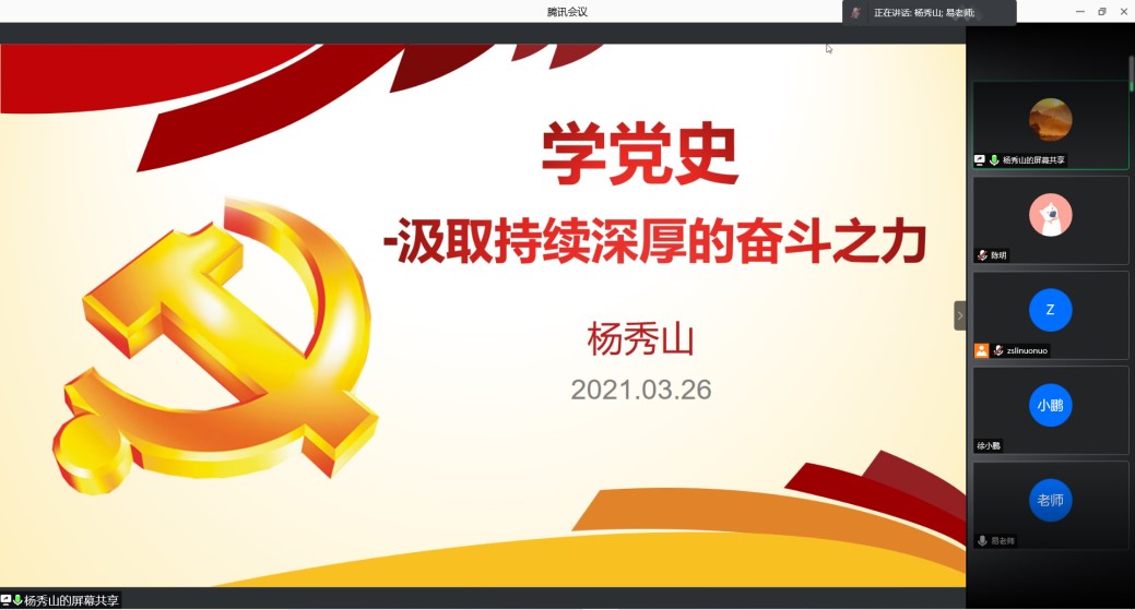 2021年3月26日下午,化学工程系全体教师采用线上形式开展了政治学习和组织生活,学习由化学工程系党支部副书记黄青松同志和钟艳君党小组长主持,化工学院纪委书记李天友同志受邀参加本次活动。
