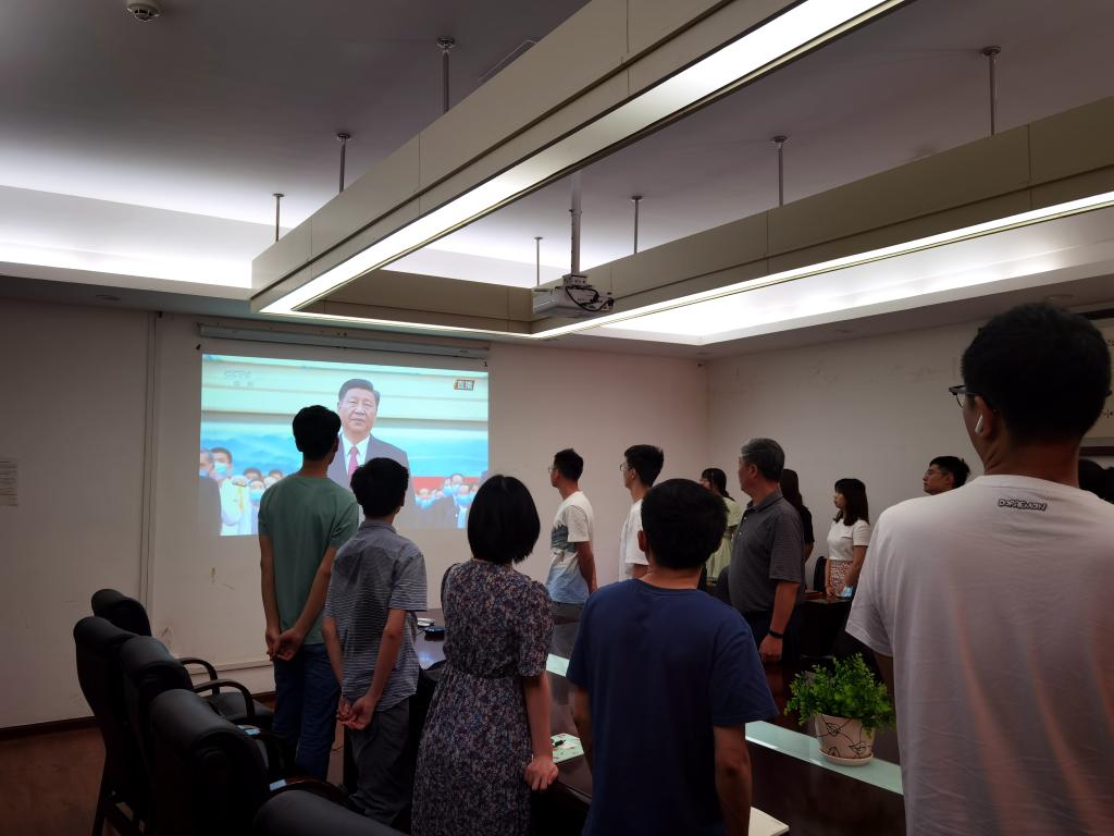 为及时传达学习习近平总书记讲话精神,教育引导广大领导干部和师生党员向优秀学习,崇尚先进,见贤思齐,28日晚上,学院党政办通过微信群、QQ群等多种方式面向全体党员发出了收听收看通知。29日上午9点,william威廉英国官网在望江校区化工楼235会议室设置会场,组织党员集体收听收看仪式盛况。29日上午10点,全体在家党政领导班子成员、支部书记、党员师生等集体收看了“七一勋章”颁授仪式现场直播。
