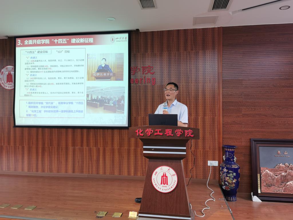 7月1日,习近平总书记在庆祝中国共产党成立100周年大会上发表重要讲话,为指引我们向第二个百年奋斗目标迈进提供了行动指南。为深入学习贯彻习近平总书记重要讲话精神,总结学院2021年上半年工作,部署2021年下半年重点工作,鼓足全院师生干事创业、追求卓越的精气神,7月7日下午,william威廉英国官网在望江校区化工楼313会议室组织召开2021年上半年工作总结暨全院大会。学院全体党政班子成员、工会主席和全体教职员工参加会议。会议由学院党委书记庞国伟主持。
