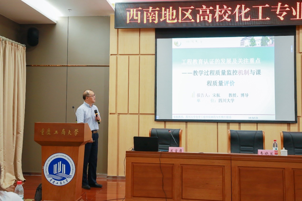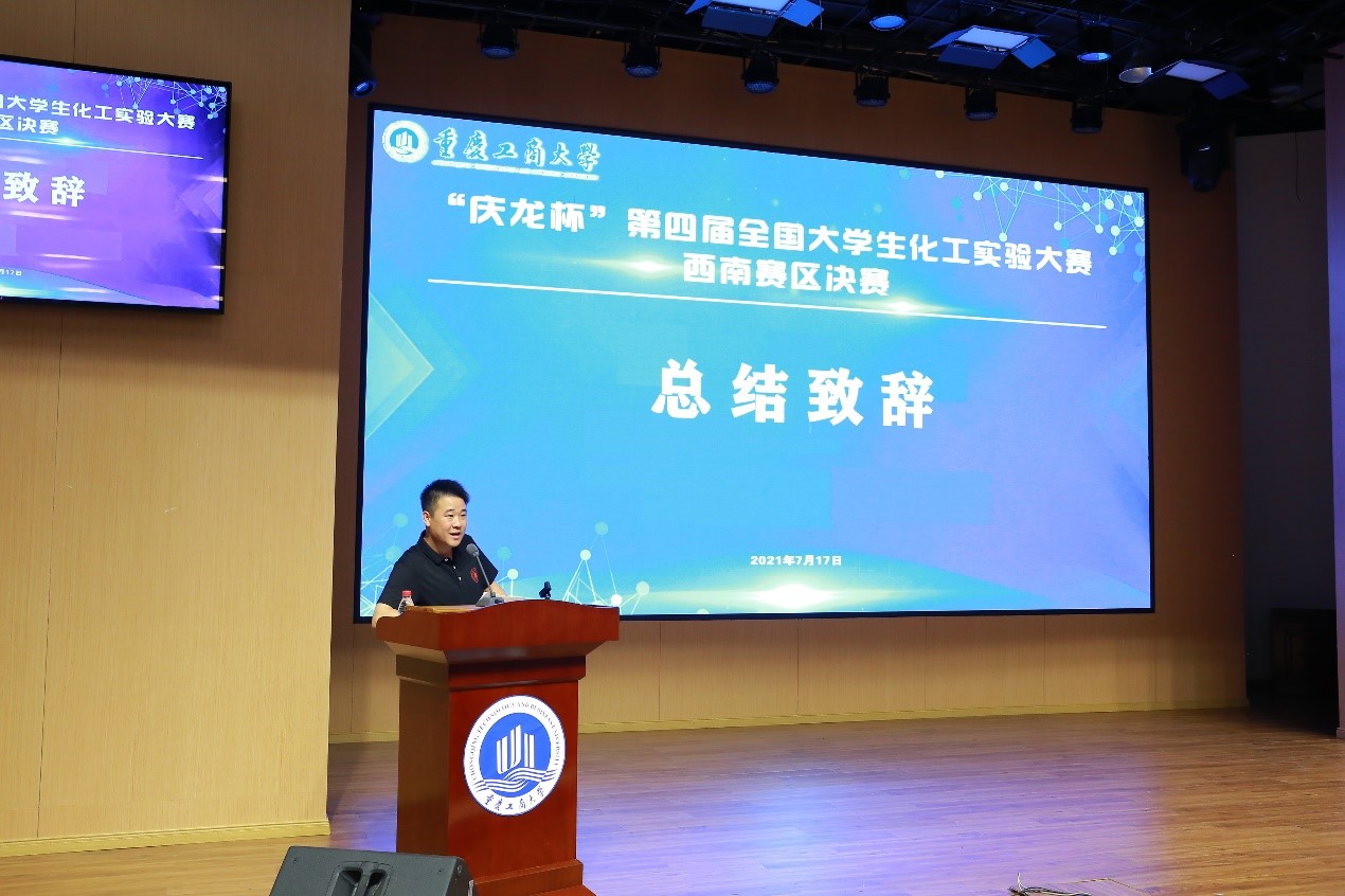 作为面向新工科的化工类工程教育体系与实践平台构建的重要组成部分,学院对这项赛事高度重视。在决赛开幕式上,学院赵长生院长在回顾大赛发展历程的同时指出了竞赛对化工类专业核心课程教学质量提高的促进作用,希望以大赛为契机,通过相互的交流学习,不断提升化工类专业教学质量,培养养出更多高素质综合型人才服务于化工行业。在决赛闭幕式上,我院郭孝东副院长也再次强调了化工实验大赛的重要作用,并预祝代表西南赛区的6支参赛队伍在国赛中取得好成绩,希望化工实验大赛越办越好!在学生比赛的间隙,重庆工商大学组织参赛指导教师参加了“西南地区高校化工专业及课程建设研讨会”。会上,我院宋航教授、叶世超教授及刘长军副教授分别以“专业认证的发展及关注点”、“建设化工原理课程设计教材,助力新时代卓越工程师培养”、“关于新工科时代化工原理实验教学的思考”为主题进行了大会报告,并与参会教师进行了交流探讨。