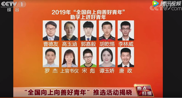 CCTV-1报道“全国向上向善好青年”表彰对象
