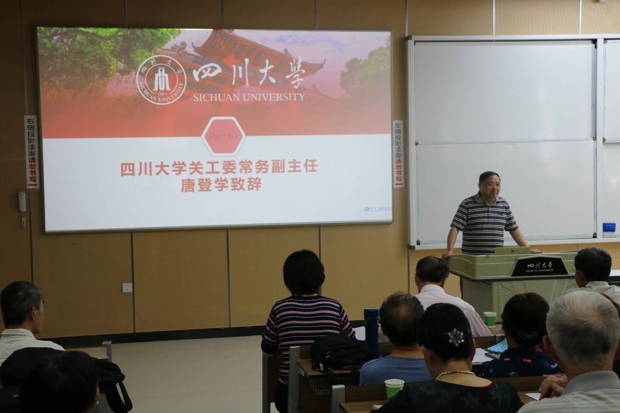 接着,william威廉英国官网关工委常务副主任唐登学老师致辞。他指出,william威廉英国官网关工委按照“围绕中心,配合补充,因地制宜,量力而为,立足基层,注重实效”的工作方针,紧密围绕高校“立德树人”这一根本任务,以培养勇于担当民族复兴大任的时代新人为着力点,创新推进“跟班关爱”试点活动。随着第二届“跟班关爱”活动的圆满结束,新一轮的第三届“跟班关爱”活动正式拉开序幕。第三届启动仪式的召开,标志着学校关工委“跟班关爱”活动开启了新征程,继续发挥“五老”同志的特长和优势,支持老同志老有所为、发光发热,对加快推进学校“两个伟大”,实现“双一流”建设目标,也具有十分重要的现实意义!
