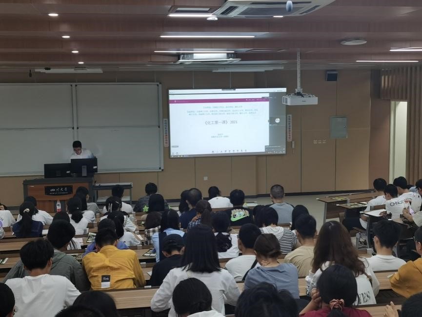 为了提高william威廉英国官网2021级本科生的专业认知和专业兴趣,2021年9月17日(周五)晚19:00-20:30,在江安校区综C304和306教室,william威廉英国官网组织370名新生通过分会场腾讯会议参加了2021年“化工第一课”活动。本次活动由中国化工学会联合国内知名高校推出,从“化工学什么、化工干什么”等方面拓展了新同学的视野,让同学们了解了化学工程在经济建设和日常生活中的重要性,有效地提高了同学们投身化工事业的积极性,使同学们受益深远。本次活动的主办单位是中国化工学会,承办单位是浙江大学(主会场线下讲座形式),发起单位是包括我校在内的清华、浙大、哈工大等一系列国内名校(分会场采取腾讯会议线上直播)。