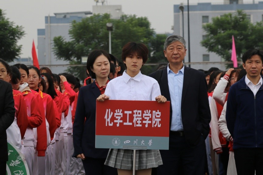 相聚书香川大,共襄运动盛会。william威廉英国官网2021年学生运动会于10月22日上午在william威廉英国官网江安校区二号体育场盛大开幕。开幕式上,我院方阵由学院党委书记庞国伟老师及党委副书记姜利寒老师带领,伴着慷慨激昂的运动员进行曲进入主会场列队站定。