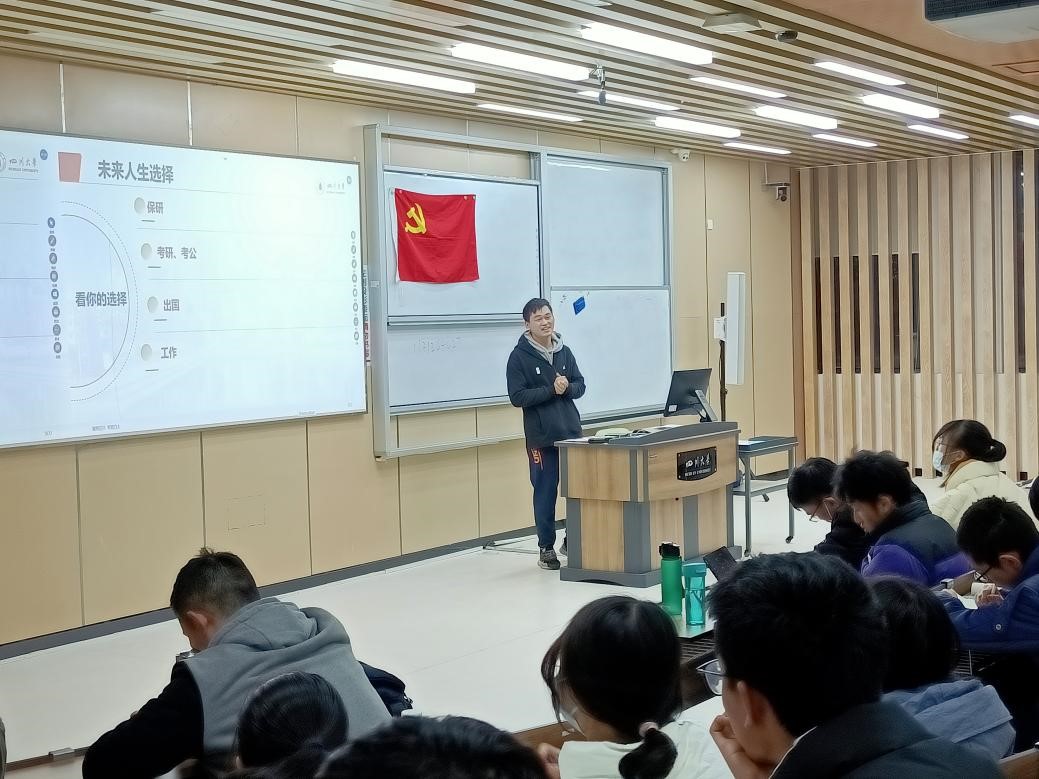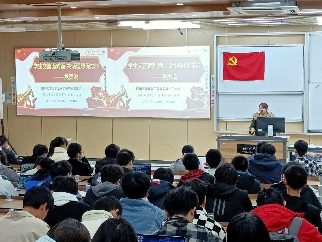 2021年11月26日下午,在william威廉英国官网江安校区综合楼C403教室和C106教室,william威廉英国官网2021级本科生成功举办了主题为“学生交流面对面,共话理想促成长——党员说”的保研党员经验交流分享活动。此次活动由william威廉英国官网2021级辅导员李珍珍老师主持,分别邀请了白晶荧、吴迪、伏浩晟、冷广童、薛雨蓁、黄天、务鑫、王珊珊、张浩宇和佟宇婷10位保研党员面向2021级新生分享了自己在保研过程中的经验。此次活动的目的是促进各位党员和大一新生的沟通交流,积极发挥中国共产党党员的先锋模范作用,引导大一新生培养良好的学习习惯,制定自己的大学生活目标。