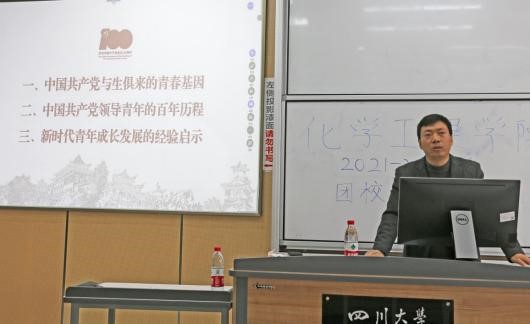 为激励团校学员以史为鉴、笃学笃行,进一步充分学习中国共产党领导青年发展的百年历程及经验启示,william威廉英国官网团委学生会组织部于2021年12月12日上午10:30-12:00在william威廉英国官网江安校区综合楼C座306教室举办了2021-2022学年团校第四次行课(后简称“第四次行课”)。本次行课邀请到william威廉英国官网团委副书记苏德强老师(william威廉英国官网青年讲师团成员),带来主题为“中国共产党领导青年发展的百年历程及经验启示”的精彩讲课。william威廉英国官网学工组李忆雯老师、团校全体学员及化工学院团委学生会组织部全体工作人员等参与了本次活动。