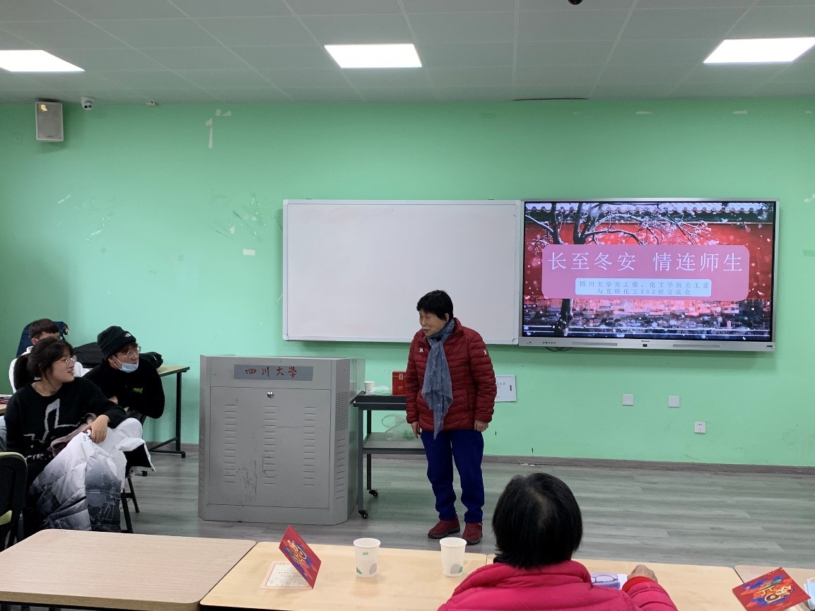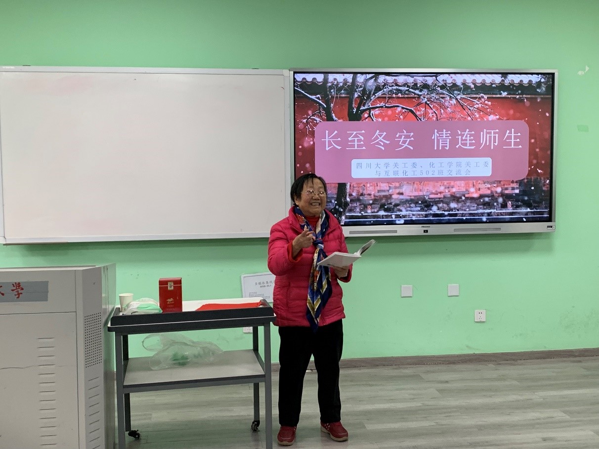 2021年12月9日下午14:00,本着切实为同学们解决学习与生活中的问题的原则,校院两级关工委老教师们来到william威廉英国官网江安校区综合楼B座B107,与2021级william威廉英国官网互联化工2班全体同学一起,顺利开展了主题为“长至冬安,情连师生”的跟班关爱活动。