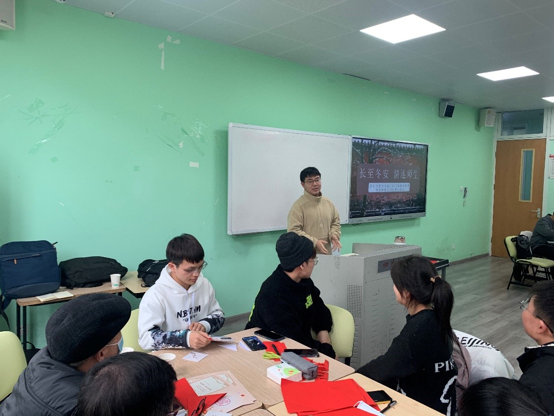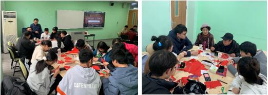 活动第一部分,首先,由主持人介绍二十四节气的内容和相关习俗,带领大家了解中华民族的节气文化。接下来,老教师们与学生们一起,以剪纸为媒介,进行了深入交流。活动过程中,师生不仅学习了传统的剪纸艺术,剪出了各式各样的作品,更是在合作中增进了相互的情感。老师们也在整个过程中对同学们的学习生活情况进行了进一步了解,针对期中考试情况,分享了他们的学习经验,并根据一些具体问题提出了建议。老师与同学在合作手工的同时进行交流,没有了拘束,呈现出一片祥和欢乐的气氛。