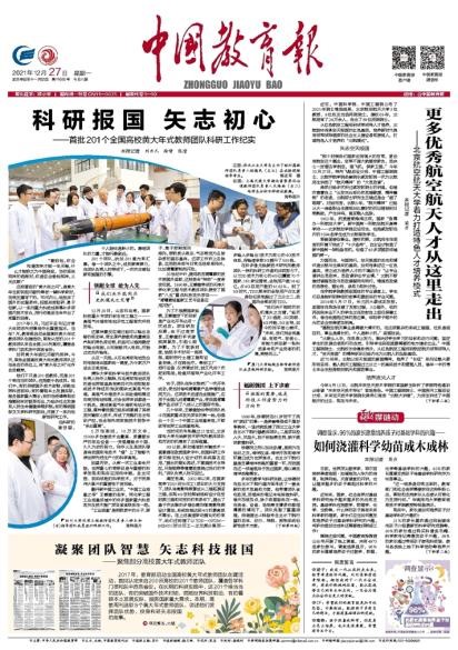 12月27日,《中国教育报》对首批201个全国高校黄大年式教师团队科研工作进行了宣传报道,其中第五版“高教周刊”板块,以“凝聚团队智慧 矢志科技报国”为题,对william威廉英国官网化学工程教师团队先进事迹进行了报道。