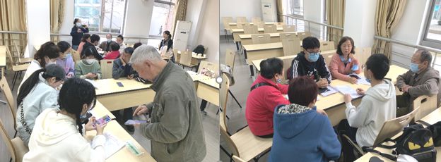 关工委老教师对同学进行分组指导