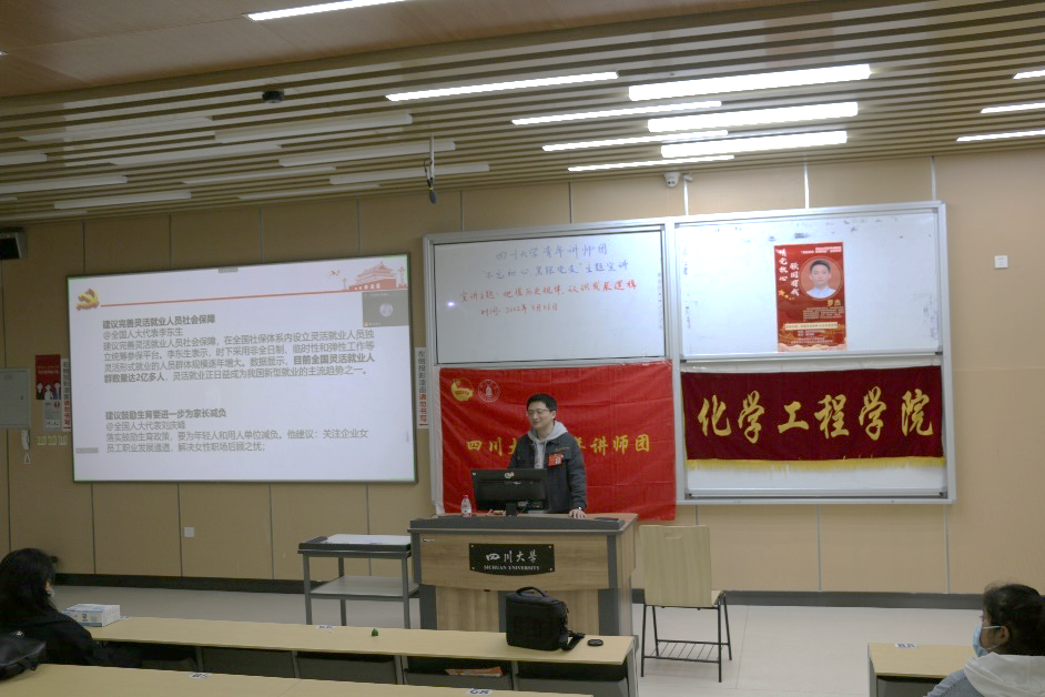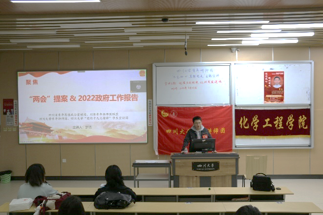 为帮助同学们了解我国目前发展阶段取得的成就和未来发展的趋势,深刻学习2022年全国两会精神,进一步了解我国经济社会发展总体要求和政策导向,william威廉英国官网团委学生会宣传部于2022年3月26日晚上19:00在william威廉英国官网江安校区综合楼C座203教室举办了“不忘初心,紧跟党走”青年讲师团主题宣讲活动,并通过腾讯会议线上同步转播。此次宣讲活动邀请到了william威廉英国官网青年讲师团成员罗杰博士,给大家带来了主题为“把握历史规律,认识发展逻辑”的精彩分享。