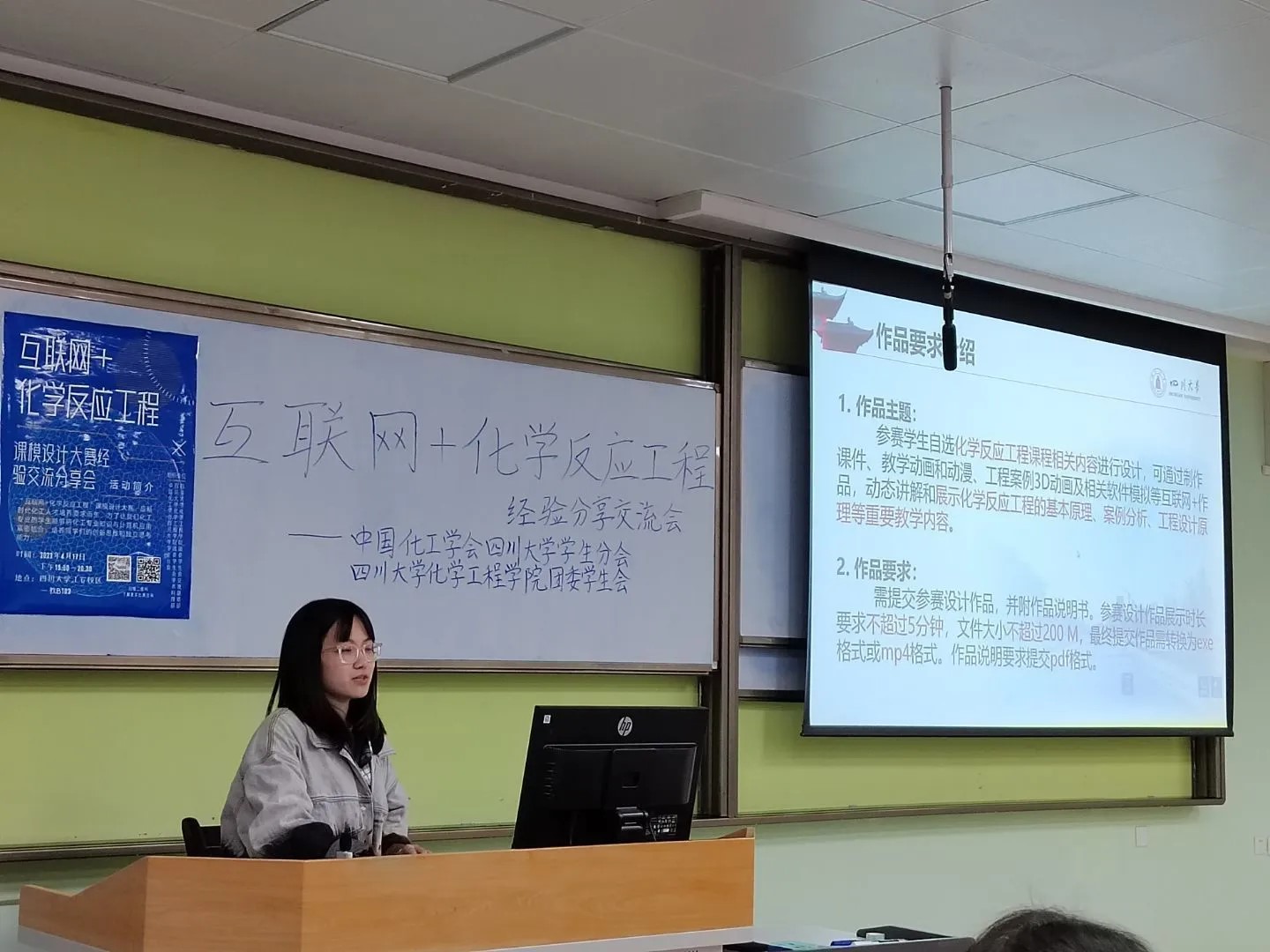 活动伊始,主持人胡雯旗同学简单介绍了第五届“互联网+化学反应工程课模设计大赛”相关信息和我校在第四届比赛中所取得的成绩,并介绍了参与分享的三个获奖团队。接着,唐思扬老师向在场同学提出了指导性意见,她表示参赛的意义在于个人理论运用能力与创新能力的提升,鼓励在场的学生积极参与反应工程课模设计大赛和化工设计大赛。随即开始获奖团队的经验分享。