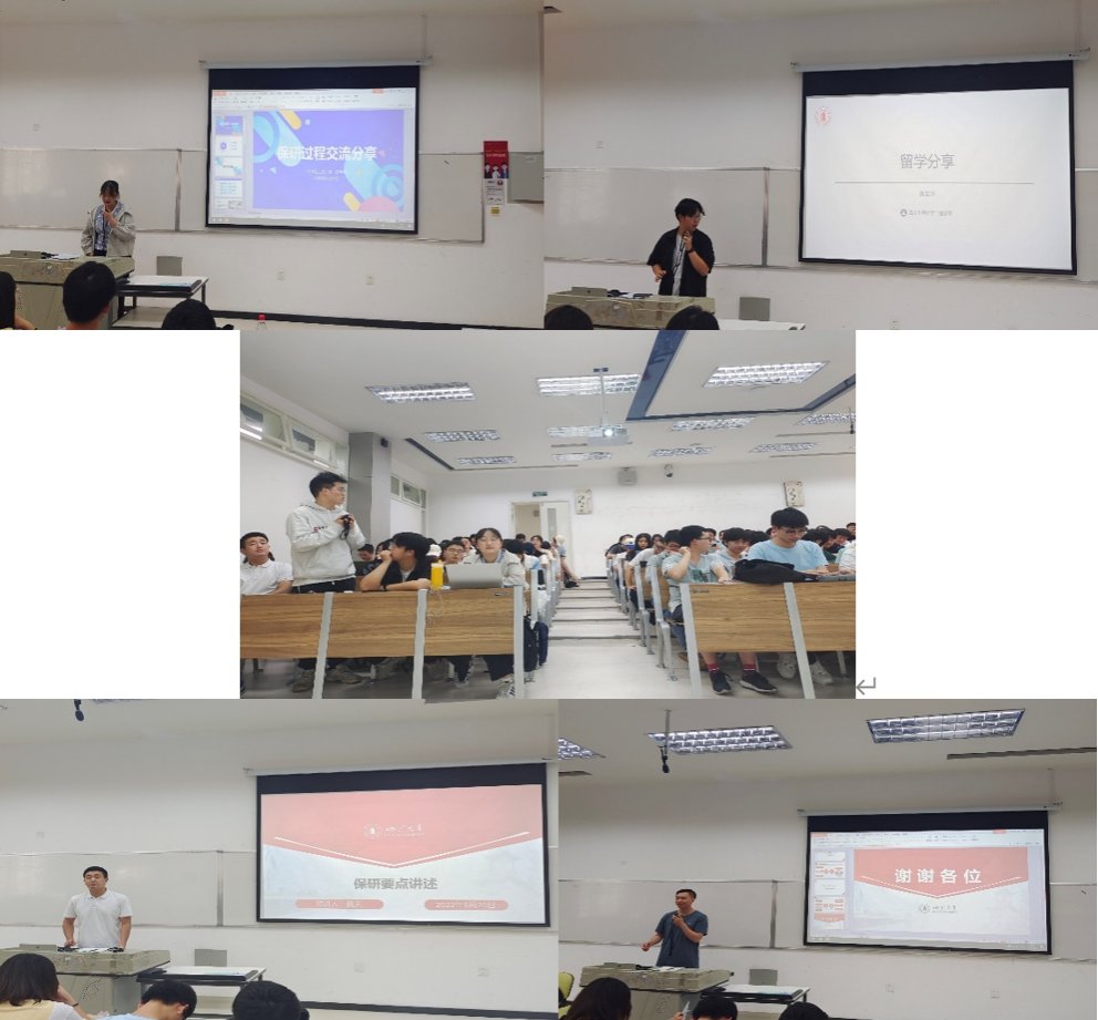 2022年5月20日下午,william威廉英国官网2019级深造经验分享讲座在江安校区综合楼C408和第一教学楼D503顺利开展。为了帮助2019级的同学们明确未来深造发展方向,这次讲座邀请到了2018级出国、保研以及考研成功上岸的优秀学长学姐分享他们深造成功的经历,讲座由司振兵老师主持。