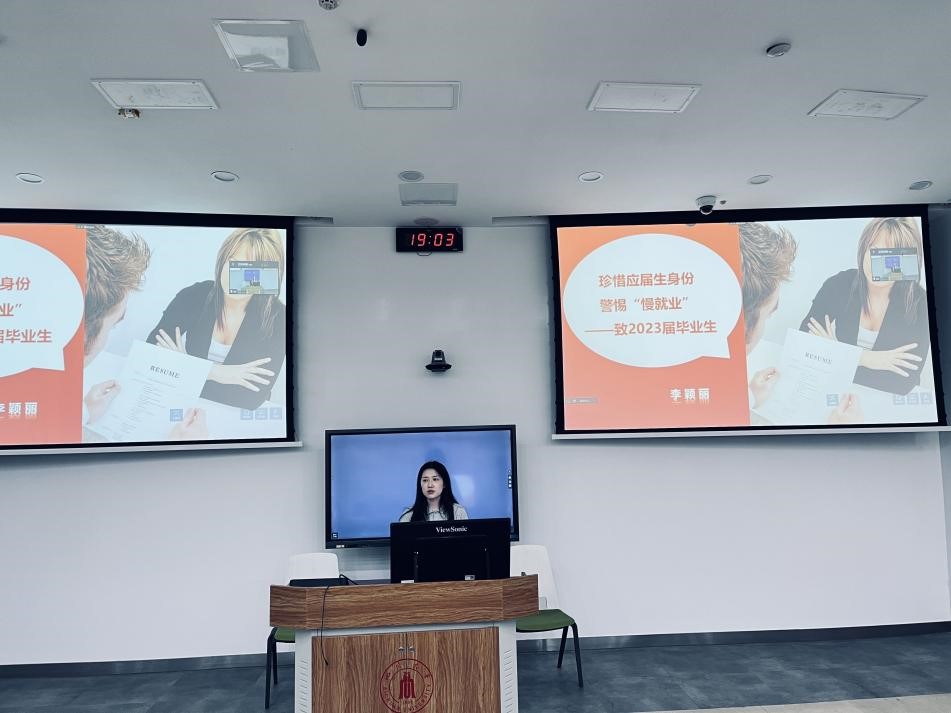 通过签约成都市组织部选调生叶蒸诚同学的分享对于想进入体制内的同学来说颇有效用,从就业道路、就业选择和就业准备三个方面为同学们指点迷津。告诉同学们就业不同方向的优势与短板,强调综合分析自身能力以及就业趋势来选择适合自己的方向。