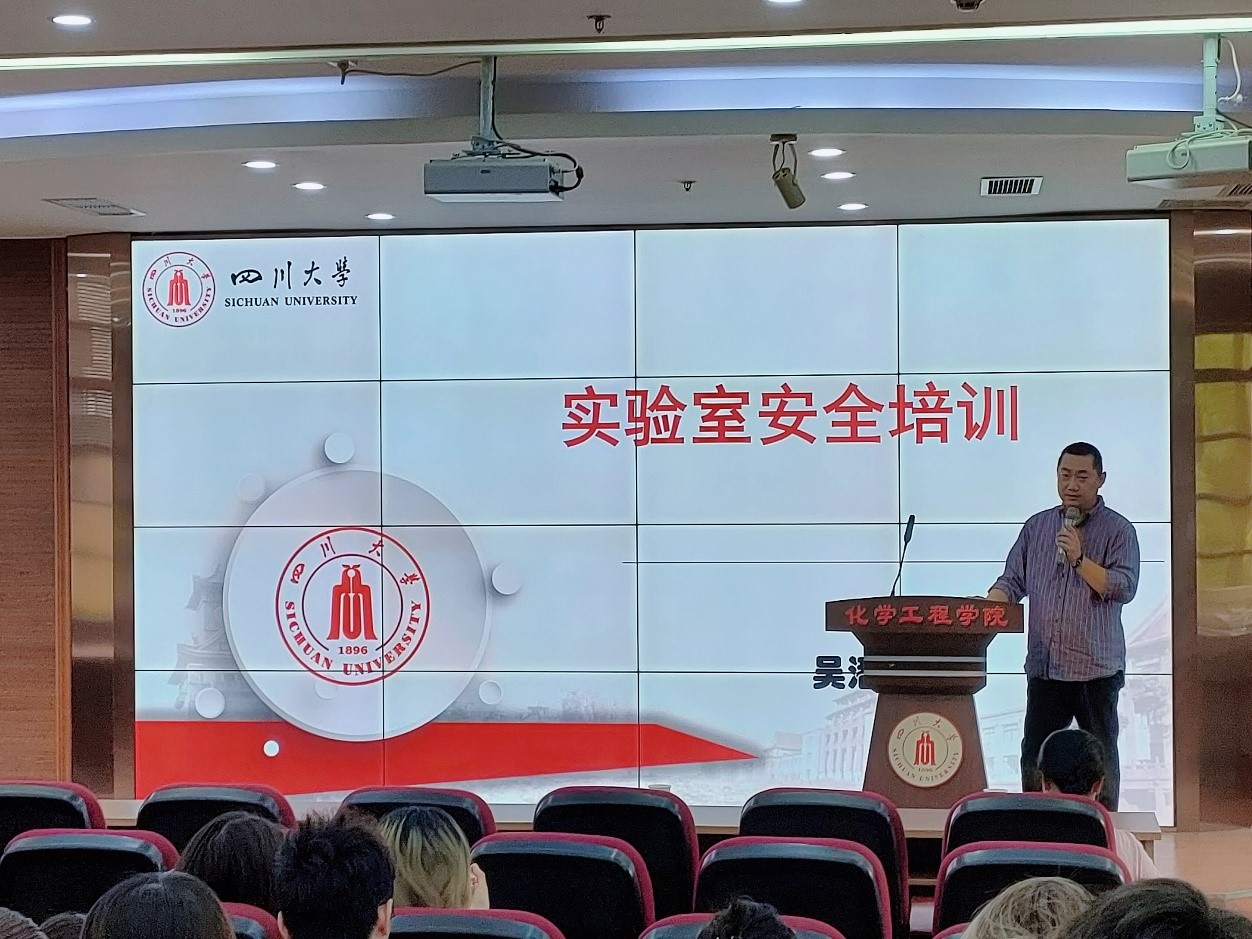 安全培训之前,谢锐老师对实验室安全的重要性和必要性进行了强调,并对主讲人吴潘老师进行了简要介绍。