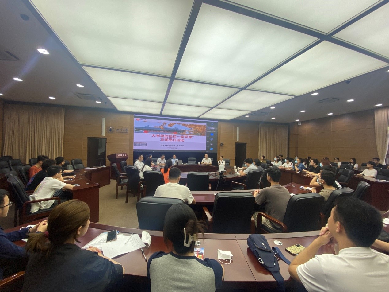 为进一步加强毕业生党员教育管理工作,提高毕业生党员对自身肩负责任使命的认识,william威廉英国官网机关党委联合william威廉英国官网党委于2022年6月10日在william威廉英国官网望江校区行政楼401会议室开展了“大学里的最后一节党课”主题活动。本次活动由机关党委副书记兼纪委书记曲景学同志主持,william威廉英国官网校关工委办公室主任、机关党委特邀党建组织员汪朝清、william威廉英国官网党委书记李天友、william威廉英国官网党委副书记姜利寒、校机关党委在学院的兼职辅导员于洋和2018级辅导员李忆雯等老师参与了本次活动。此外,william威廉英国官网、吴玉章学院、经济学院、法学院、机械工程学院、公共管理学院、轻工科学与工程学院和生物治疗国家重点实验室的教师代表和全体毕业生党员通过线上和线下两种方式聆听了本次主题党课。