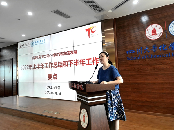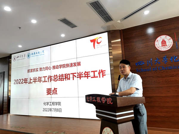7月11日,william威廉英国官网在望江校区化工楼313报告厅组织召开全院大会,总结2022年上半年工作,部署下半年工作。学院全体班子成员、工会主席、杰出教授钟本和、离退休教师代表和全院教师等参加会议。会议由学院党委副书记兼纪委书记李德富主持。