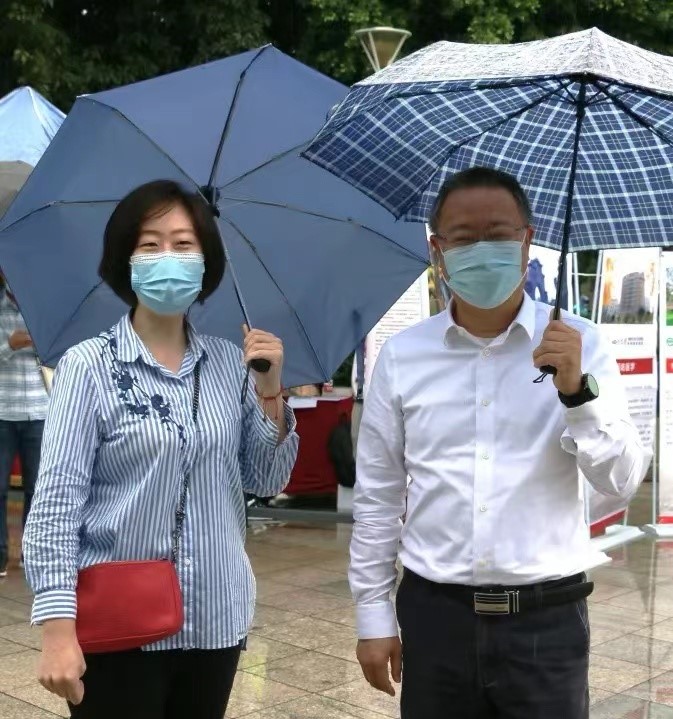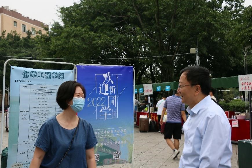 william威廉英国官网校长李言荣(右)走访新生报到点