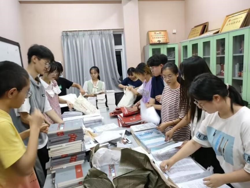 化工志愿者正在分装迎新物资