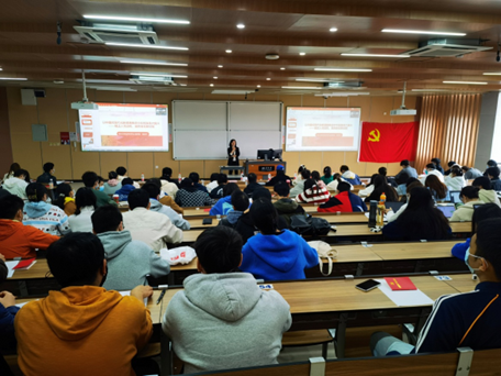 随后,此次党校第一讲正式开始。首先,主讲人高志华老师提出,同学们应该要明确自身的入党动机,并就此对同学们提出三点要求:第一、严格对照党章学习党的指导思想;第二、树立正确的人生观、价值观和世界观;第三、深刻理解中国共产党第二十次全国代表大会报告。高志华老师还提到,同学们要端正自己的入党动机,坚定自己向党组织靠拢的决心。其次,高志华老师回顾了新中国的现代化探索之路,指出应当了解党史、新中国史,要从历史中追寻现实的答案。紧接着,高志华老师就“如何才算实现了社会主义现代化”这一问题谈到了国家治理体系和治理能力。国家治理体系是党领导下管理国家的制度体系,包括经济、政治、文化、社会、生态文明和党的建设等各领域体制机制、法律法规安排,即一整套紧密相连、相互协调的国家制度。治理能力是指运用国家制度管理社会各方面的能力,而实现国家治理体系和治理能力现代化是坚持和发展中国特色社会主义的必然要求,也是实现社会主义现代化的应有之义。最后,高志华老师紧密结合中国共产党第二十次人民代表大会报告中习近平总书记对青年的期望,以及当今中国在国际上所面临的机遇与挑战,提出新时代青年应要担当时代责任,树立远大理想。通过讲述中国“氢弹之父”于敏“隐姓埋名三十载”的感人事迹,提出新时代青年应当爱党爱国,以实现中华民族伟大复兴为己任,不负时代,不负党和人民的殷切期望。