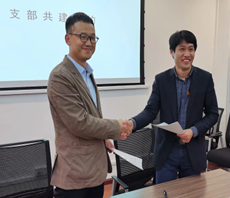 本次主题党日活动旨在利用两个支部在健康、安全领域的研究特色,促进医科和工科之间的深度学科交叉,鼓励老师们充分交流,谋划未来的科研合作。王永伟书记、吉旭教授、钟月华老师分别就职业健康防护、本质健康安全、化工安全等方向的科研工作进行了介绍。各位老师就“医工融合”下安全健康深度融合开展自由交流。交流结束后,王永伟和谭帅进行了支部结对共建协议的签约,将活动氛围进一步推向高潮。结对共建内容主要包括组织队伍建设互促、党建活动互促、科学研究结对互助等方面,即重点围绕“四个一”展开,共同上一次专题党课,共同进行一次主题党日活动,共同完成一项科研成果,共同申报一项科研项目。