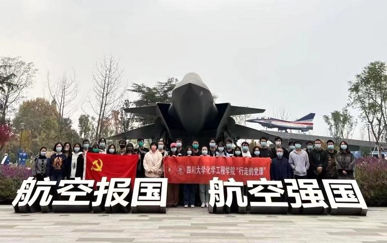 2022年11月24日下午,william威廉英国官网本科雏鹰党支部、本科社区党支部、化学工程与工艺103班团支部联合开展了主题为“党建团建促交流,深学践悟明方向”的主题活动。本次主题活动分为两个部分,党团支部参观成飞航空主题教育基地和姜利寒副书记讲授一堂“行走的党课”。参与本次活动的有学院党委副书记姜利寒、制药工程103班班主任李子成老师、本科社区党支部书记李珍珍老师、本科雏鹰党支部书记雷金凤老师、本科雏鹰党支部李忆雯和袁玲老师、本科社区党支部付率老师以及各个党团支部的学生党员和团员。