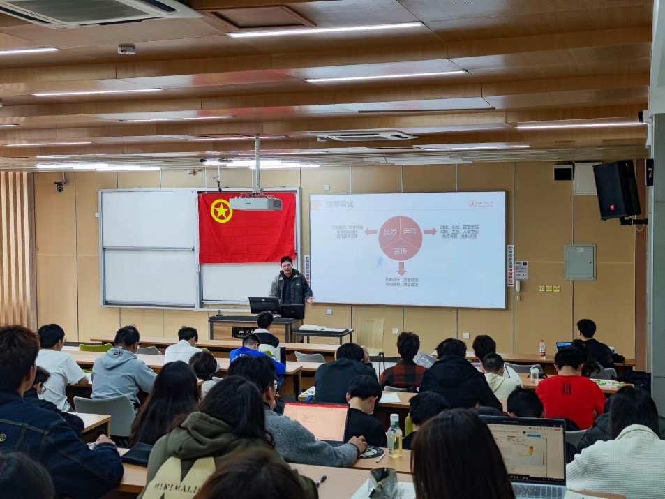 创业者雷伊多从技术、运营和宣传三个板块进行分享和交流。其中,技术板块主要涉及设备维护、技术开发、后台数据统计、远程技术支持等内容;运营板块主要涉及进货、仓储、店面管理、排班、工资、人事变动、售后客服、社群运营等内容;宣传板块主要涉及形象涉及、店面装潢、海报绘制、线上宣发等内容;此外,雷伊多还对创业进行了自己的诠释——创业需要创新和融合,它既是一个需要有强烈使命感的事情,也是一个辛苦和幸福并存的事情。创业是个持续的过程,对于创业者来说是一个持续学习的过程。在互动问答环节,同学们踊跃提出了关于创业的疑问,现场交流学习气氛热烈。