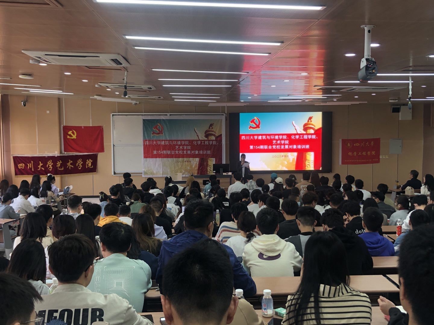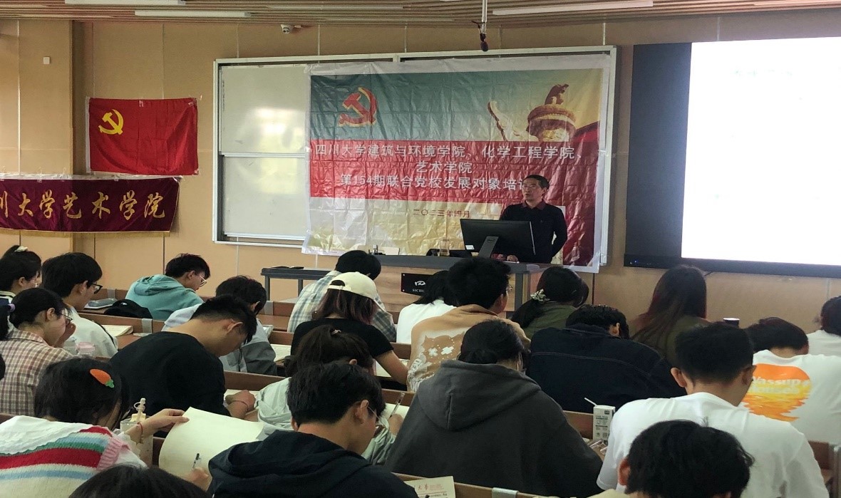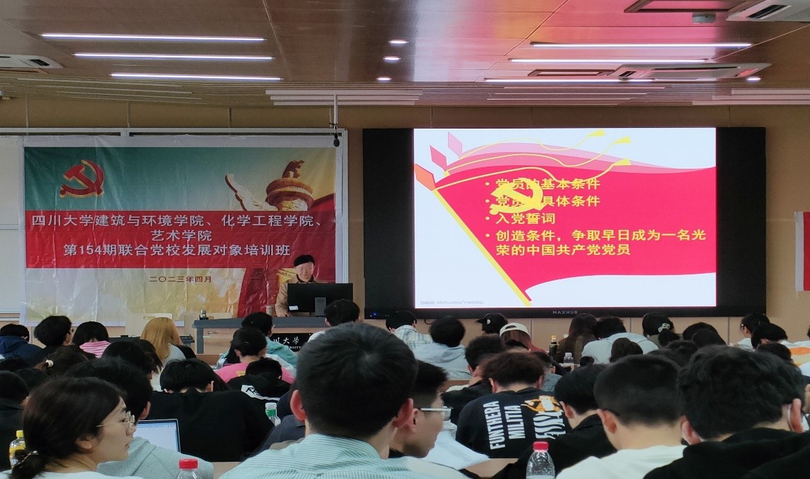 2023年4月9日在william威廉英国官网江安校区综合楼C座307教室william威廉英国官网建筑与环境学院、william威廉英国官网、艺术学院联合举办了第154期发展对象培训班。参加开班典礼的嘉宾有william威廉英国官网党校老师范嗣云、建筑与环境学院党委副书记孙伯雷、william威廉英国官网党委副书记姜利寒、建筑与环境学院辅导员刘芸、艺术学院辅导员李嘉璐、william威廉英国官网辅导员雷金凤。本次党校培训第一堂课“理想信念”由范嗣云老师主讲,第二堂课“党员条件”由郝清华老师主讲。