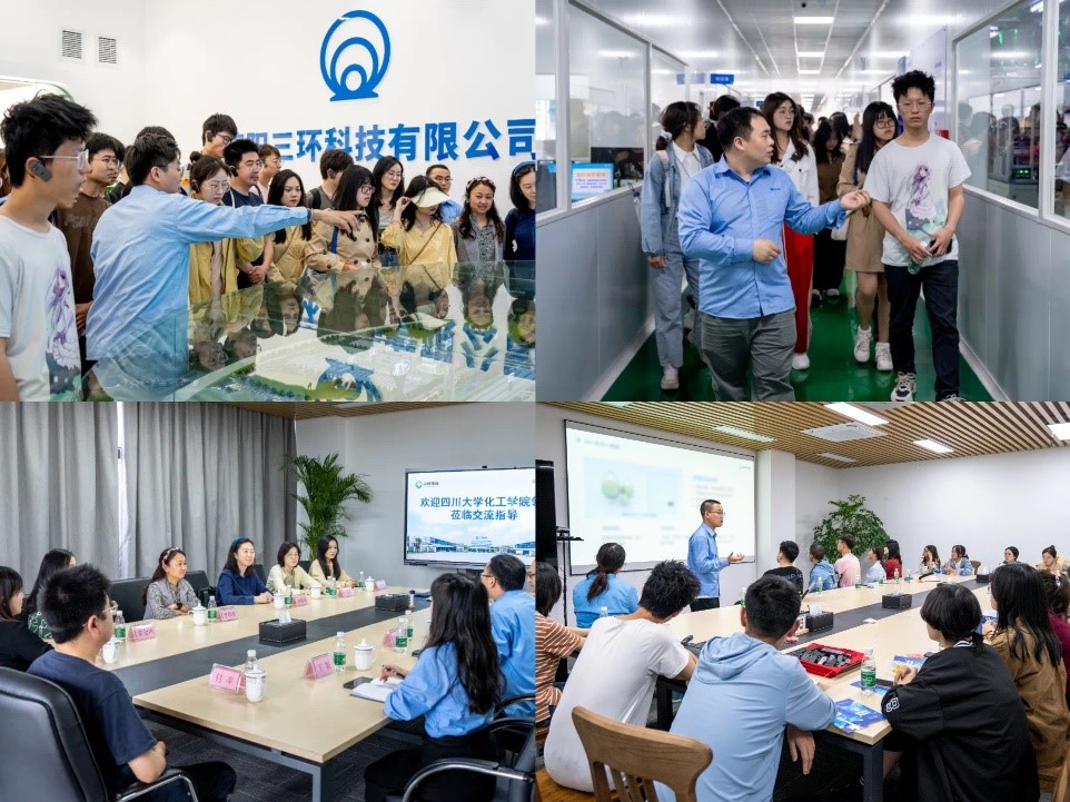 “德阳行”红色研学第一站——德阳三环科技有限公司。学院师生在公司领导的陪同下,实地参观了德阳三环科技有限公司的生产基地,了解公司的发展历程、产品技术现状、产业发展布局和企业文化等。在参观过程中,同学们也了解到三环集团坚持自主创新,把关键核心技术掌握在自己手里,解决了多项电子元件和先进材料的“卡脖子”技术。