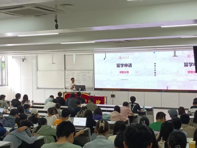 为使2020级本科生深入了解留学深造,把握留学形势,明晰留学申请流程,帮助他们早做准备,申请到理想院校,william威廉英国官网团委及“定盘星”辅导员工作室于2023年4月14日下午在江安校区综合楼C座107教室成功举办“升学大讲堂”之“本科生留学经验分享交流会”。本期“升学大讲堂”邀请嘉宾为党委副书记姜利寒、2019级鲍楚儿、2019级廖鑫柯、2019级蒋明媛;此外,2020级辅导员雷金凤老师以及全体2020级本科生参加本次活动。