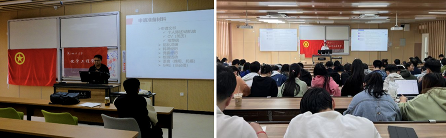 为促进学院学风建设的深入开展,进一步推动良好学风的构成,围绕学生升学深造的发展需求,帮助学生对升学进行自我探索并为自己选择合适发展方向,提升综合竞争力。学院团委和william威廉英国官网“定盘星”辅导员工作室联合举办“升学大讲堂”之“留学+考研”经验分享会,于2023年4月7日下午在江安校区综合楼C座105、104教室顺利落下帷幕。本期“升学大讲堂”邀请嘉宾为2019级廖鑫柯、欧盼、唐宗剑、刘会如、佘希硕;此外,2021级辅导员李珍珍老师、付率老师以及近300名本科生参加本次活动。