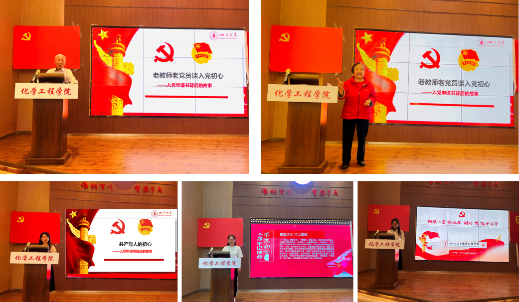 学生代表郑嘉莹(左下)与黄小峰(右下)分享自己入党动机与初心
