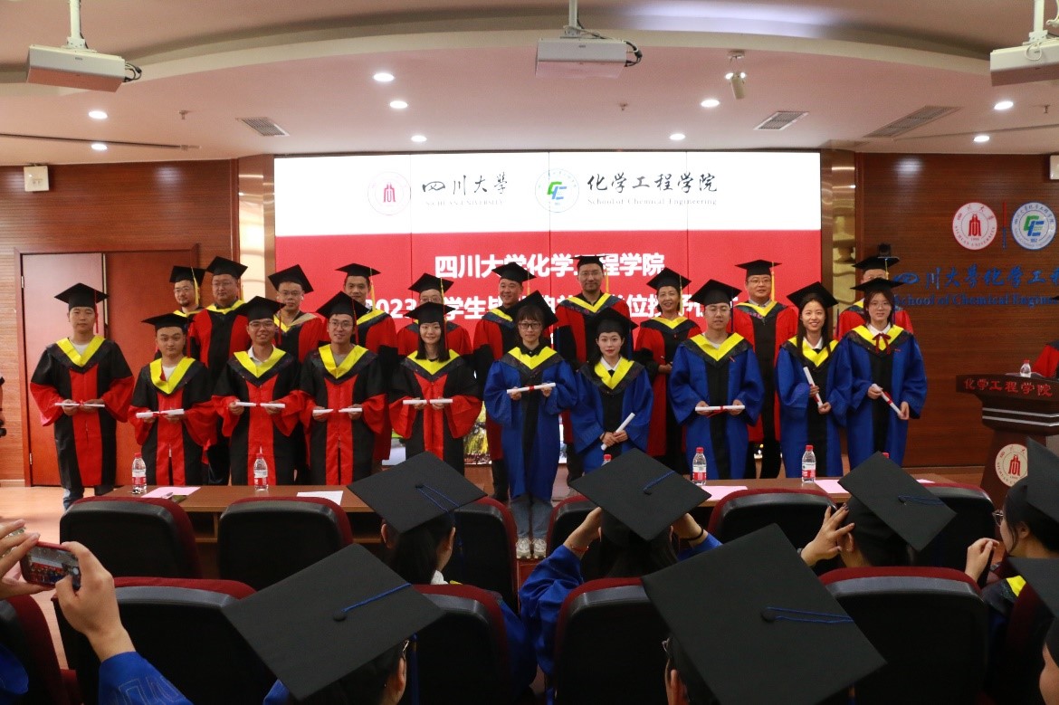 在师长亲友的共同见证下,全体2023届毕业的43位博士研究生、209位硕士研究生和226位本科生以及部分家长代表齐聚一堂,为自己的川大化工求学岁月画上圆满的句号,在新的征程放飞青春梦想。在庄严肃穆的国歌声中,全体与会成员表垂手肃立,齐唱国歌,共同迎来这一难忘的时刻。
