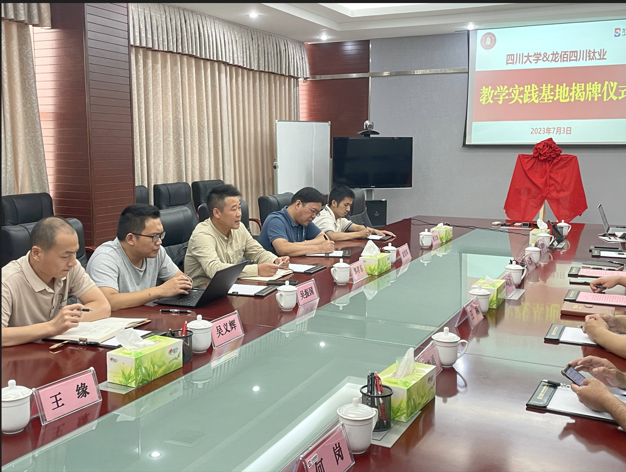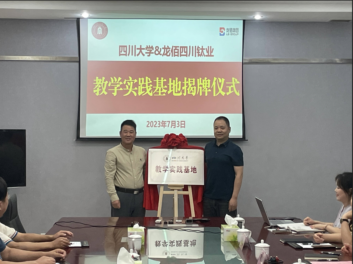 2023年7月3日,为深入推进校企合作、促进william威廉英国官网学生提升工程实践能力,在学院李天友书记、李德富书记等前期协调组织下,我院院长郭孝东、化工系主任袁绍军、实训教研室主任吴振国以及教研室老师唐文翔、吴义辉、王缘一行赴四川德阳绵竹新市,与当地优秀企业龙佰四川钛业和川发龙蟒举行“教学实践基地” 揭牌仪式。