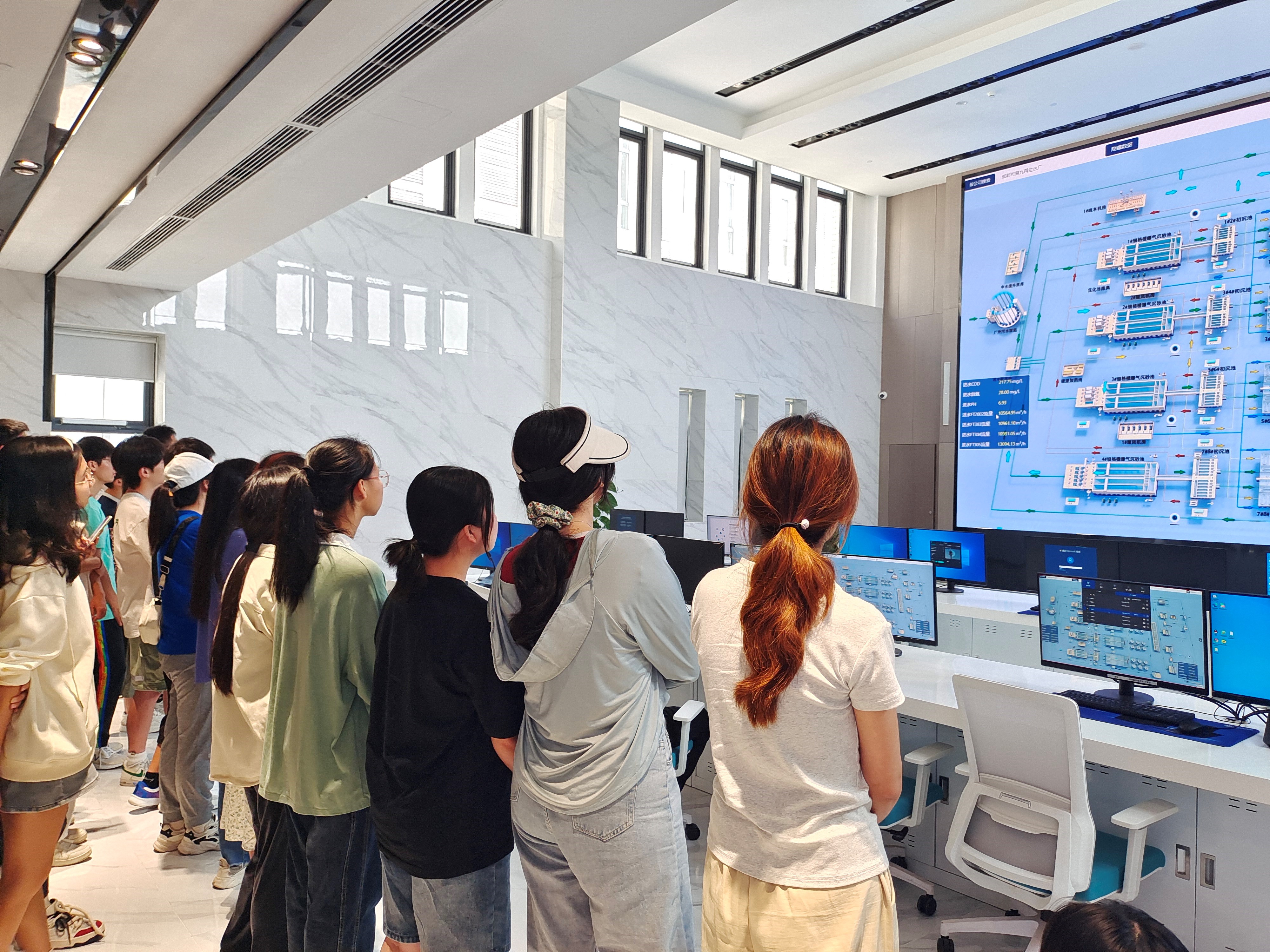图1:同学们在污水厂的中控室参观