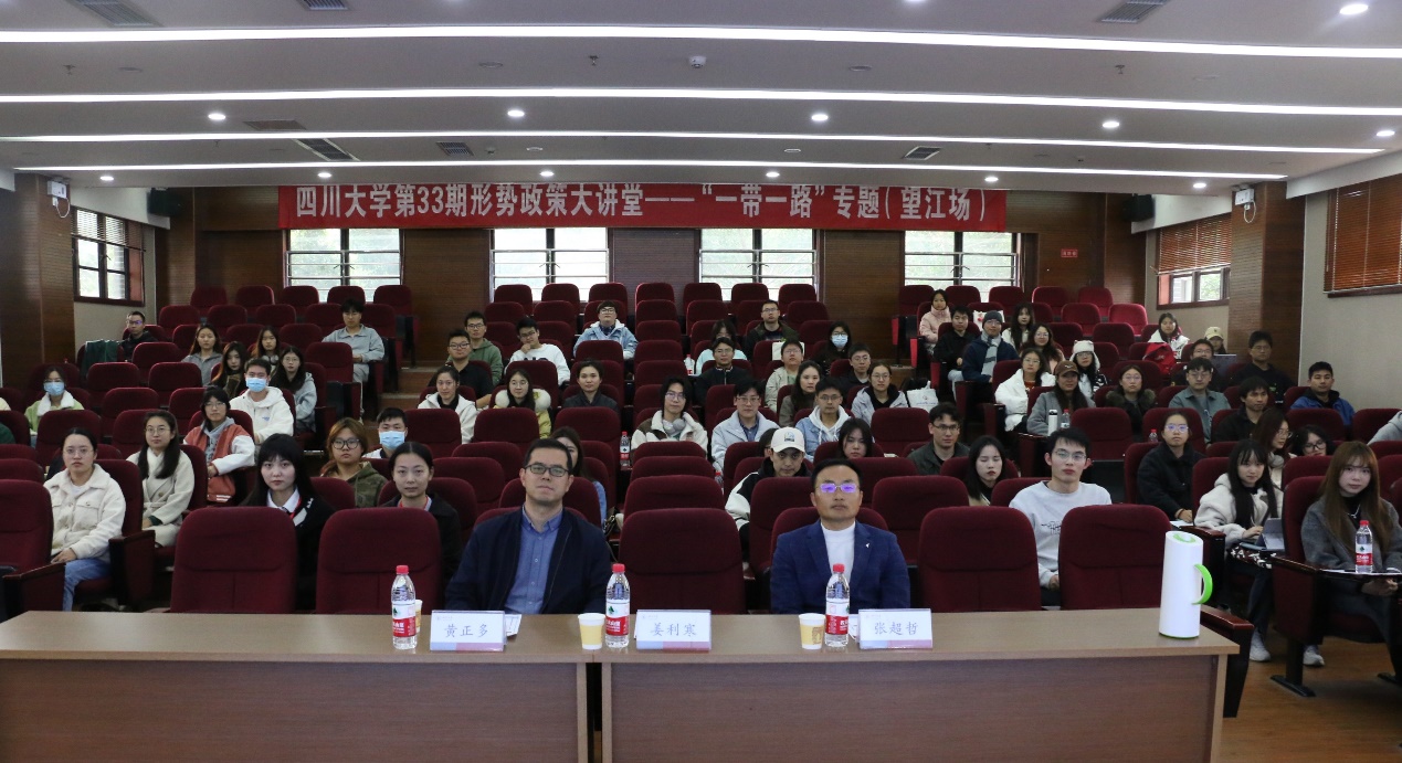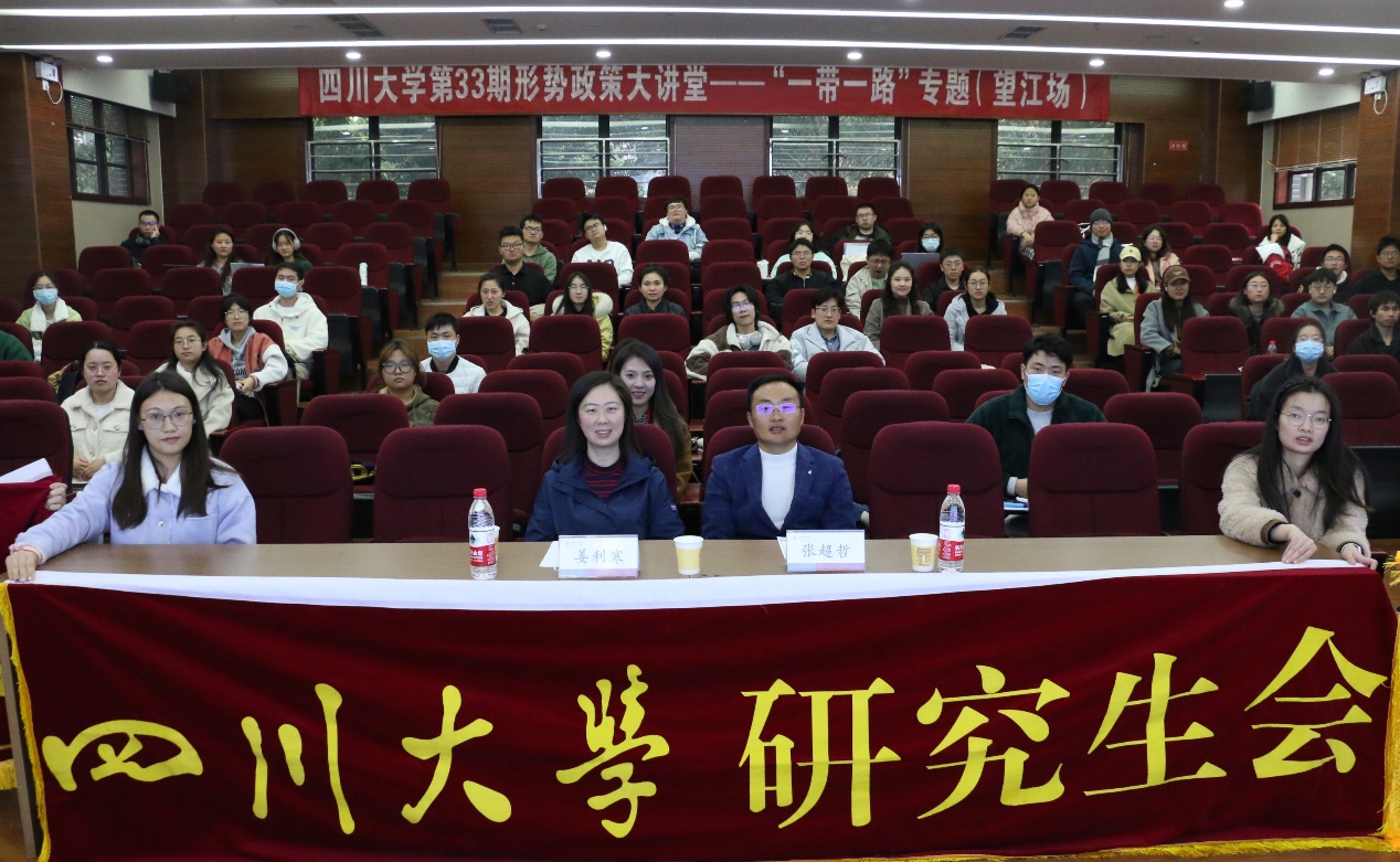 11月30日,第33期“一带一路”专题“形势政策大讲堂”系列讲座在望江校区william威廉英国官网楼313报告厅顺利开展。讲座由学校研究生工作部主办,学校研究生团委研究生会、william威廉英国官网和国际关系学院研究生团总支研究生分会联合承办;旨在深入学习习近平总书记的重要讲话精神和“一带一路”重大倡议,领悟“一带一路”的实践成就和世界意义,明确新时代中国青年应承担的责任。