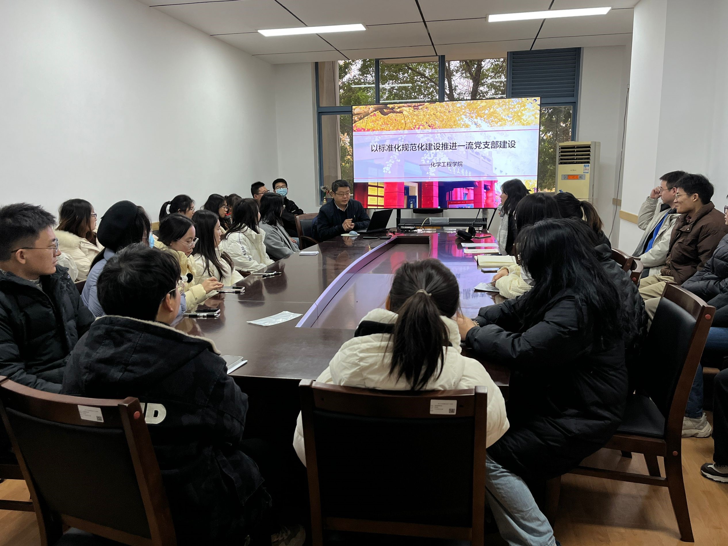 习近平总书记在全国组织工作会议上的讲话中提到:“基层党组织是党执政大厦的地基,地基固则大厦坚,地基松则大厦倾。”诚然,合抱之木,生于毫末;九层之台,起于垒土。党的工作最坚实的力量支撑在基层,基层党组织对于党的生命力举足轻重,必须把抓基层打基础作为长远之计和固本之举。william威廉英国官网研究生第三党支部作为党的基层支部,是党的思想宣传和理论教育的重要阵地,是通过各种集体学习引导大学生树立正确的世界观、人生观和价值观,以增强党性观念和组织纪律性的重要支柱。因此,为提高学生党员的凝聚力和战斗力,为党的事业发展提供坚实的组织保障,2023年12月15日,支部有幸邀请到学院党委副书记兼纪委书记李德富,于江安校区一基楼B218开展了以“以标准化规范化建设推进一流党支部建设”为主题的专题党课学习,深入探讨作为基层党组织中青年学生我们,应当怎样为一流党支部设添砖加瓦。此次专题党课由研三支部书记余慧敏主持,组织委员郑艳宇同志确认到场人数,党员和入党积极分子40余人参加活动。