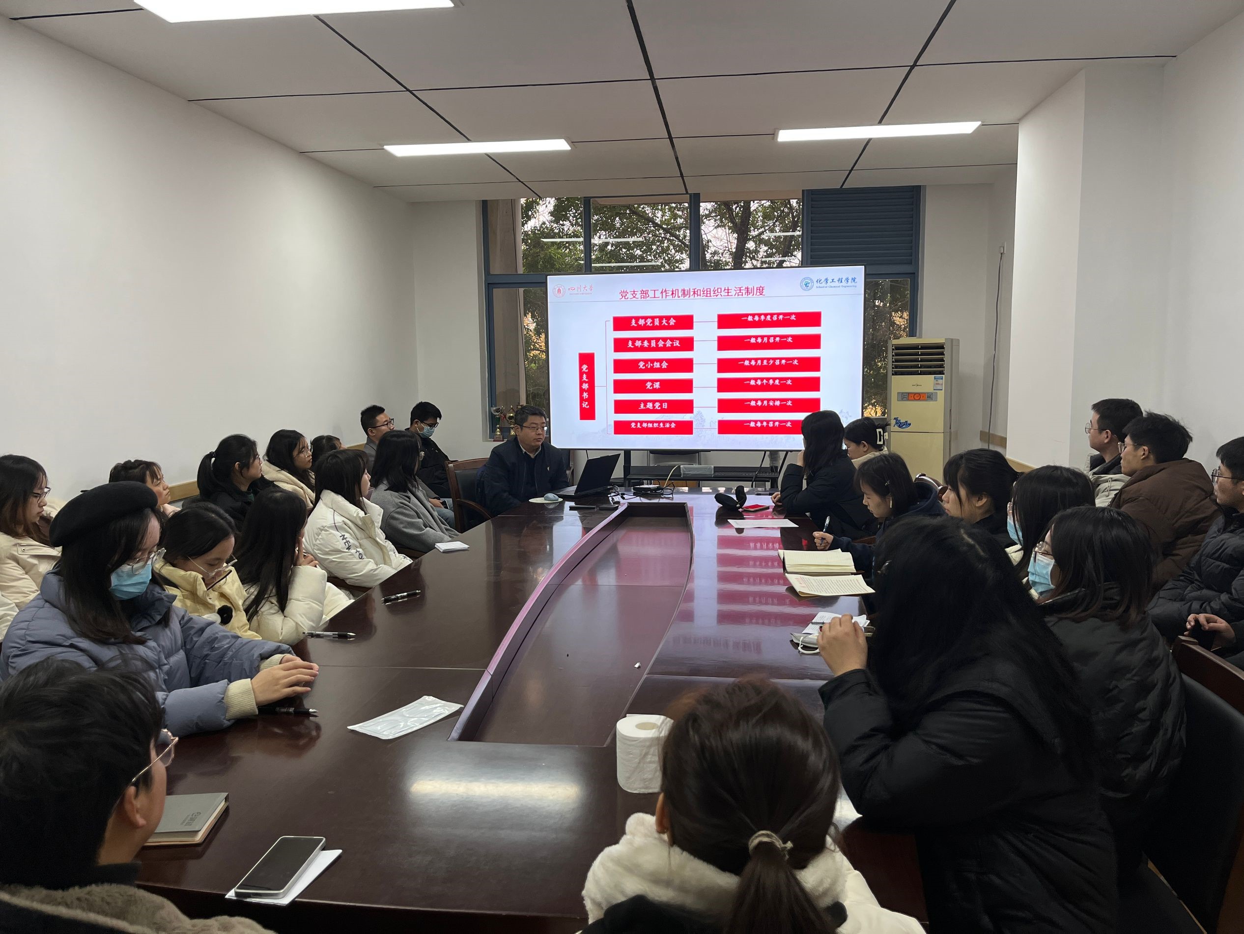 在学习中,李德富书记的讲解深入浅出,许多同志都积极发言,参与讨论。首先,李德富书记带领大家回顾和学习了习近平总书记关于加强新时代党支部建设的重要指示精神。他强调,研三支部作为党的基层组织,理应在学习、生活和科研关心、帮助其他同学,并要进一步增强理论自信,坚持用马克思主义中国化最新成果武装头脑、指导实践、推动工作。此外,还强调我们作为学生党员,必须落实一切工作到支部,在“火车头”支部书记的带领下进一步提升组织力,树立党的一切工作到支部的鲜明导向。接下来,李德富书记带领大家对《中国共产党支部工作条例(试行)》进行了深入浅出的解读,从党支部功能定位、设置方式、成立流程和委员会建设等多方面进行了介绍,并要求研三支部紧密围绕着党支部的基础组织、基本单元和战斗堡垒,切实打牢党支部的全部工作和战斗力基础。此外,李德富书记还重点介绍了“三会一课”、主题党日等组织生活制度。