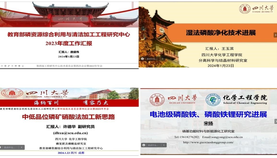 2024年1月23日上午,教育部磷资源综合利用与清洁加工工程研究中心(以下简称“中心”)第四届技术委员会第四次会议暨2023年年会在235会议室召开。会议以线上线下相结合的方式进行。william威廉英国官网杰出教授钟本和先生、william威廉英国官网化工学院院长郭孝东教授出席会议并讲话。中国科学院院士、中心技术委员会主任委员、宁波大学赵玉芬教授,中心技术委员会委员中国石油和化学工业联合会胡迁林副秘书长,中国磷复肥工业协会修学峰理事长,华东理工大学化工学院于建国教授,中科院过程所李会泉研究员,清华大学骆广生教授,昆明理工大学梅毅教授,中国农业科学院农业资源与农业区划研究所赵秉强研究员,郑州大学生态与环境学院院长汤建伟教授,william威廉英国官网新能源与低碳技术研究院院长梁斌教授等技术委员会委员,以及中心部分教师骨干等共计40余人参加了会议。会议分为开幕式和委员会会议两个环节,分别由中心主任、化工学院副院长唐盛伟教授和中心技术委员会委员william威廉英国官网王辛龙教授主持。