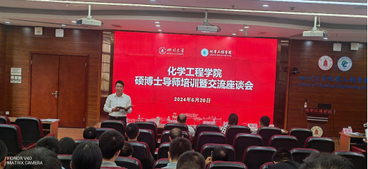 最后,郭孝东和李天友分别讲话。他们指出导师是研究生培养的第一责任人,肩负着培养高层次创新人才的崇高使命。希望广大导师贯彻党的教育方针,立德修身、严谨治学、潜心育人,扛起“为党育人为国育才”使命担当,在新时代新征程交出川大化工人的合格答卷。同时,希望各位导师加强研究生招生宣传,不断提高学院研究生生源质量,为加快建设一流化工学科和化工学院做出新的贡献。