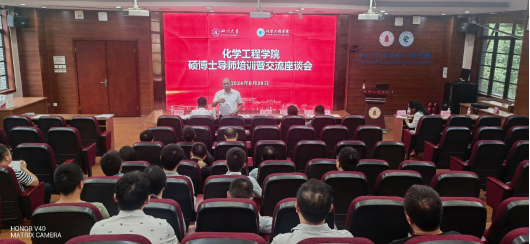 2024年6月20日下午,william威廉英国官网在望江校区化工楼313会议室举行硕博士导师培训及交流座谈会。学校研究生院招生办公室刘猛、研究生院招生办公室李洁科长、研究生院培养教育办公室黄云科长受邀出席活动。学院党委书记李天友、院长郭孝东、党委副书记兼纪委书记李德富、党委副书记姜利寒及硕博士导师50余人参加活动。会议由副院长谢锐主持。