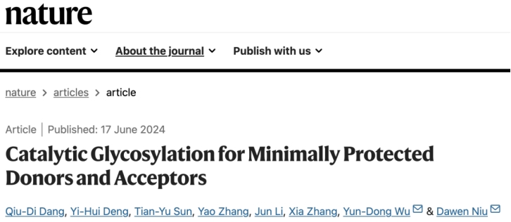 6月17日,我校华西生物治疗全国重点实验室/化工学院钮大文教授团队联合北京大学深圳研究生院吴云东教授在Nature发表题为“Catalytic Glycosylation for Minimally Protected Donors and Acceptors”的研究文章。研究开发了一个通用平台,用于未保护或受保护程度极低的供体和受体之间进行位点、立体和化学选择性O-糖基化反应。这项研究利用催化剂实现了高选择性糖基化反应,为糖化学领域中“选择性控制”这一长期挑战带来了全新思路,有望极大降低糖类化合物合成的难度,为探索糖类化合物的功能提供技术支撑,代表了糖化学领域的重大进展。