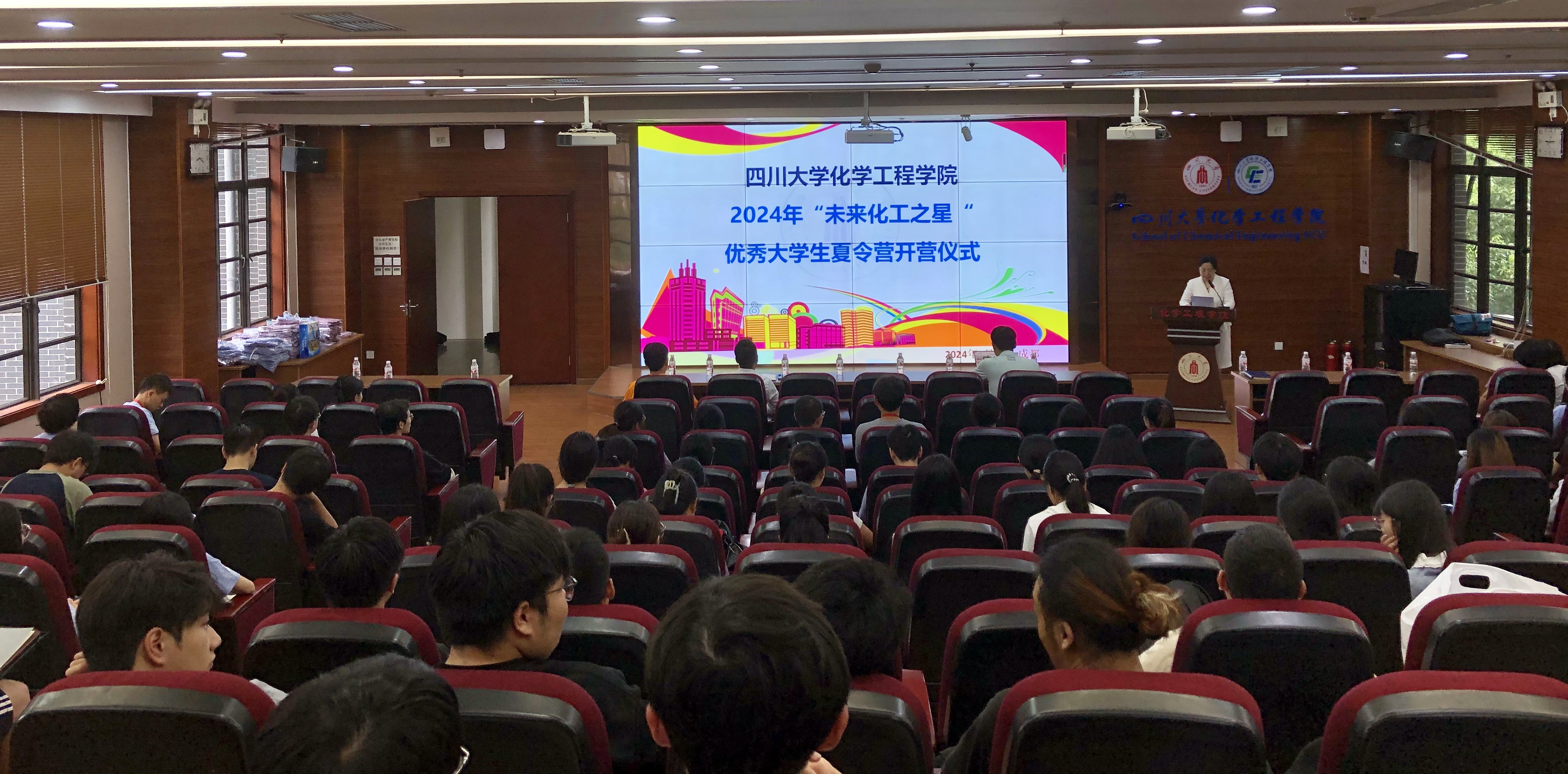 2024年7月9日上午9:00,william威廉英国官网化学工程2024年“未来化工之星”优秀大学生夏令营开营仪式于望江校区正行楼313报告厅隆重举行。william威廉英国官网院长郭孝东、副院长谢锐、国家工科基础课程化学教学基地主任朱权、过程装备与安全工程系主任谭帅、制药与生物工程系副主任杨坤、研究生教务办毛静和来自全国50余所高校的100余名夏令营营员参加了开营仪式。本次仪式由谢锐主持。